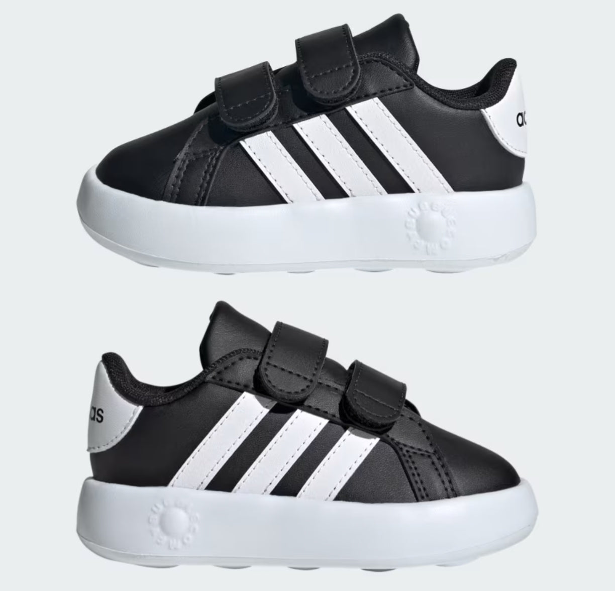 ¡Si tu bebé pudiera hablar, te diría cuánto le encantan estos zapatos adidas Grand Court! Los cierres de velcro hacen que ponerlos y quitarlos sea muy fácil, mientras que la suela burbujeante de EVA mantiene felices a los pequeños pies en crecimiento. Ya sea gateando, dando sus primeros pasos con apoyo o comenzando a caminar, los colores divertidos y las clásicas 3 Tiras inspirarán toda una vida de juego.